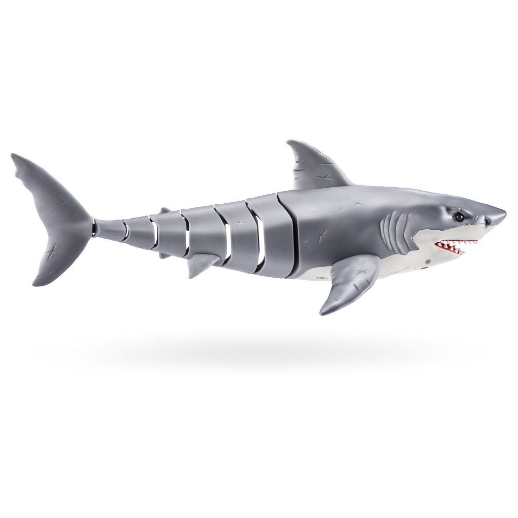 De Zuru Robo Alive haaidie zwemt als een echte haai. Zijn ogen gloeien rood op terwijl hij rondzwemt en zijn prooi stalkt. ca. 40 cm groot, beweegt realistisch. Batterijen (3x AAA) niet inbegrepen. Geschikt voor kinderen vanaf 3 jaar.