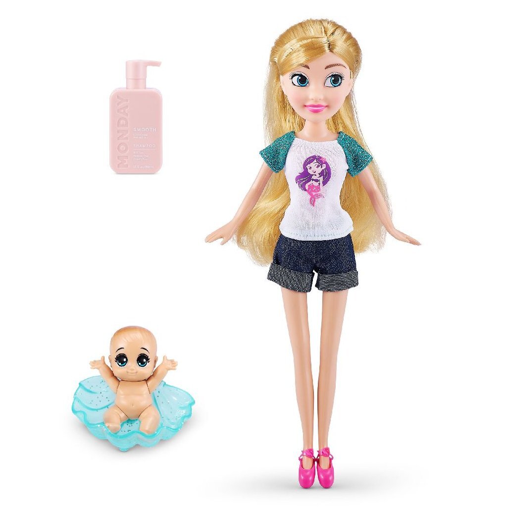 Maak kennis met de Baby oppas Sparkle pop! Ze heeft sinds kort een baan en heeft jouw hulp nodig om voor de baby te zorgen: verzorgen, knuffelen en de baby laten lachen! De set wordt geleverd met schattige accessoires zoals een kleine fles Monday Haarverzorging shampoo en een prachtige blauwe schelpen drager om de baby in bad te doen en te verzorgen. Sparkle Girlz pop heeft prachtige gedetailleerde kenmerken, geworteld haar en een volledig afneembare outfit die ook verwisselbaar is met andere Sparkle Girlz poppen (apart verkrijgbaar). Geschikt voor kinderen vanaf 3 jaar.