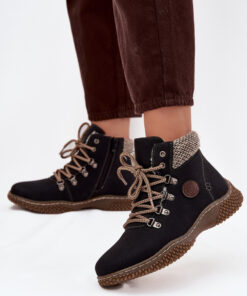 Dames laarzen gemaakt van eco leer. Het model heeft een rits en vetersluiting, wat zorgt voor comfortabel gebruik en de mogelijkheid van een perfecte pasvorm voor de voet. Het interieur is gevoerd met zacht bont voor thermisch comfort, en de afgeronde neuzen benadrukken het klassieke karakter van de schoenen. De zool van rubber zorgt voor goede grip en stabiliteit op verschillende oppervlakken. Een extra accent is het kleine logo aan de zijkant van de schacht. Deze laarzen zijn ideaal voor winterse wandelingen en dagelijkse uitstapjes.